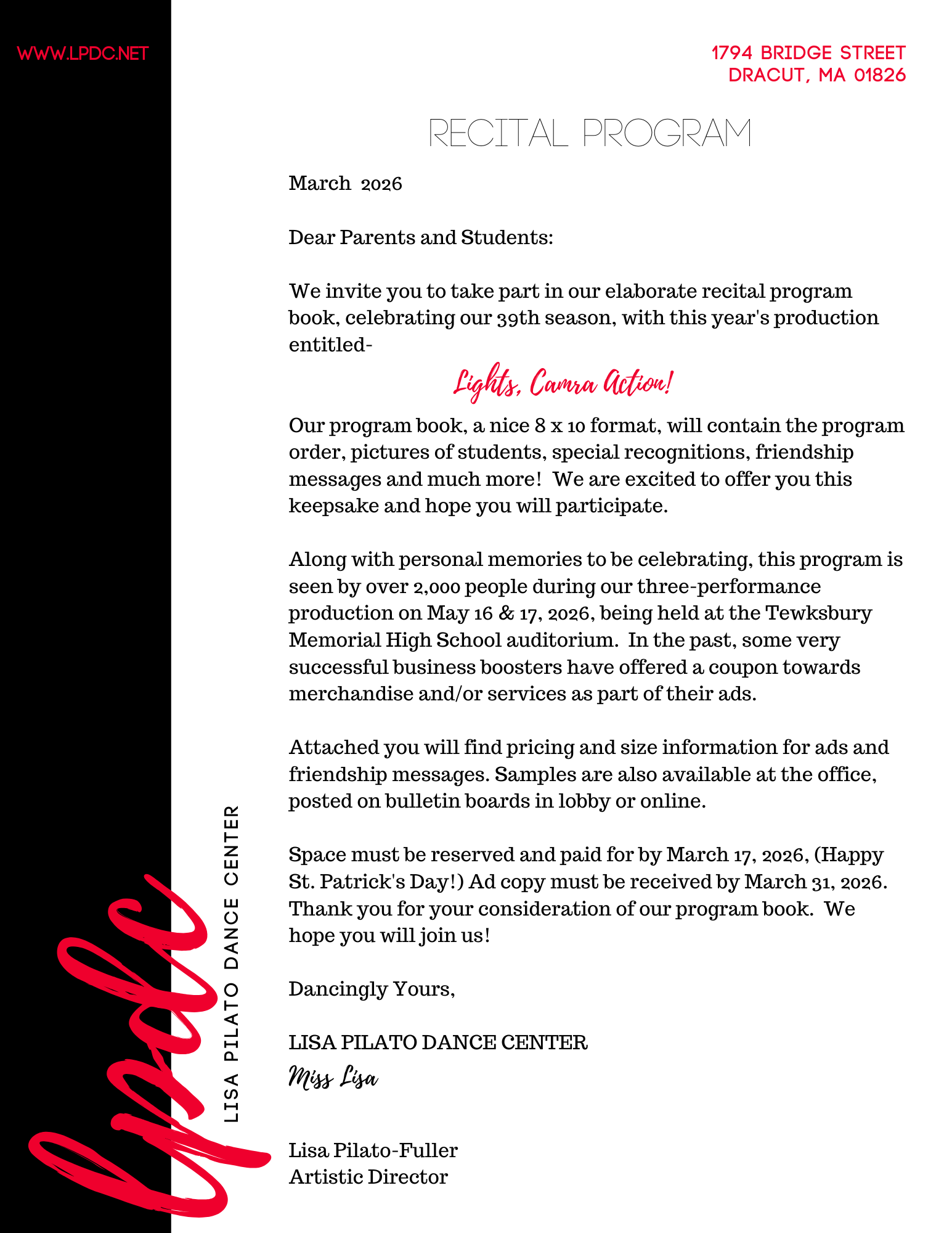Recital Ad Information